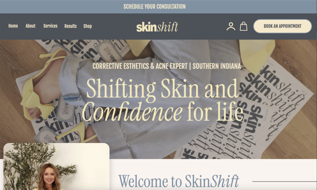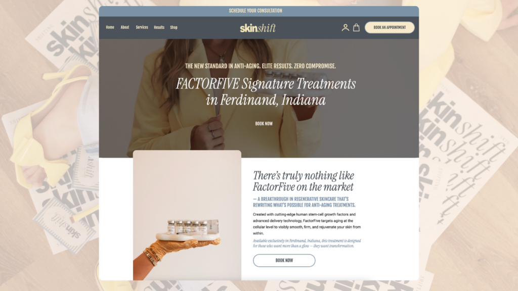 And of course, we connected her online scheduler so the entire experience flows seamlessly. Clients can learn about a treatment, see why it’s effective, grab the products that support it, and book their appointment all in one place.