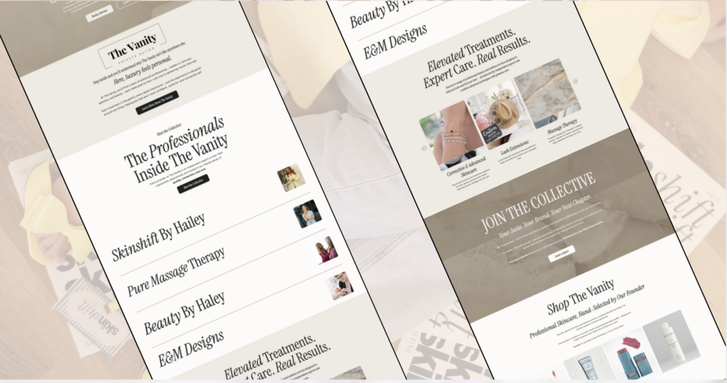 The result is a website that not only highlights the services offered inside the spa, but also helps establish The Vanity Spa as a destination where both clients and independent professionals feel excited to be part of the space.